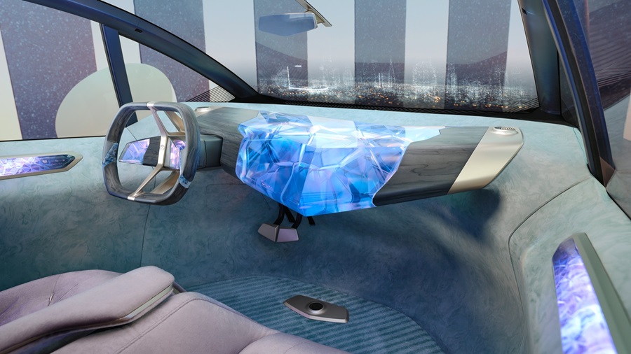 Este prototipo conceptual sorprendió con un volante rectangular y achatado, diseñado con materiales reciclados y pensado para la conducción autónoma. El volante no solo se ve como salido de una película de ciencia ficción, sino que también incorpora superficies táctiles y retroalimentación háptica.